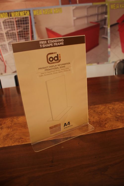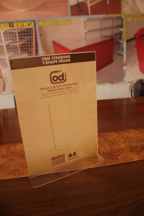 DISPLAY AKRILIK BROSUR FREE STANDING T-SHAPE FRAME A4 POTRET